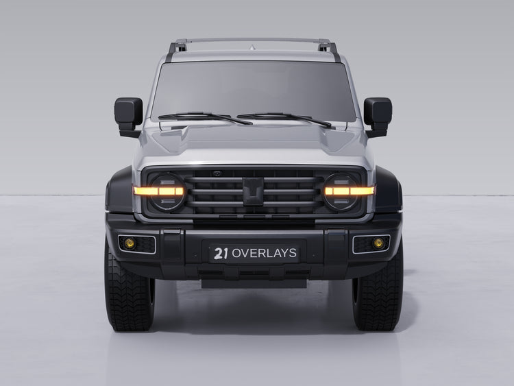 From showroom to shadow mode.This GWM TANK has undergone a stealth-inspired transformation with our signature gloss/matt black badge overlays and amber DRL tint, instantly shifting its tone from standard to standout. The amber-tinted DRLs bring a rugged, off-road-ready vibe, while the de-chromed front end creates a bold, cohesive look. Tough, tactical, and totally transformed — this is how you make a TANK your own.