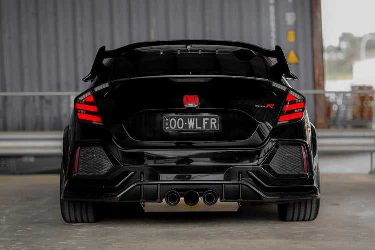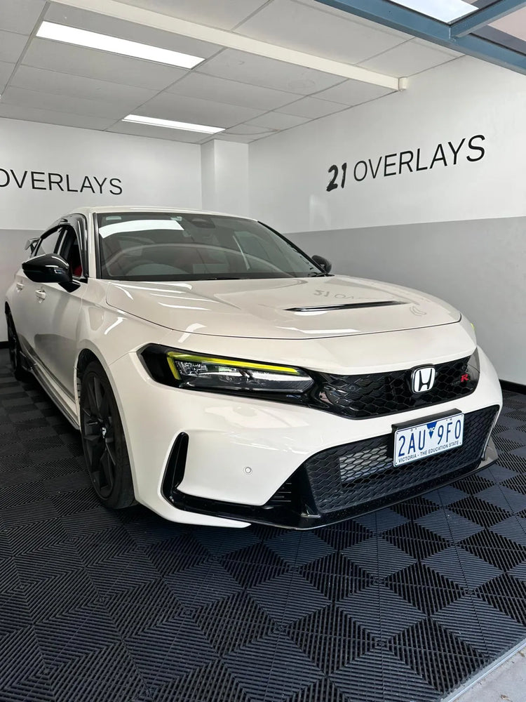 This 2023+ FL5 Type R has been transformed from high-performance stock into a refined masterpiece of detail with our precision vinyl styling. Smoked tail light and reflector overlays add stealth aggression, mirror indicator tints and badge overlays refine its identity, and front headlight/DRL overlays sharpen the face with understated edge.
